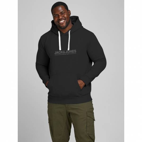 Felpa uomo in taglie grandi della linea JACK&JONES, modello con cappuccio.