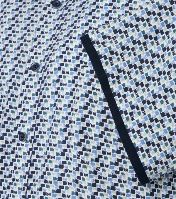 Collo botton down, taschino applicato sul petto.