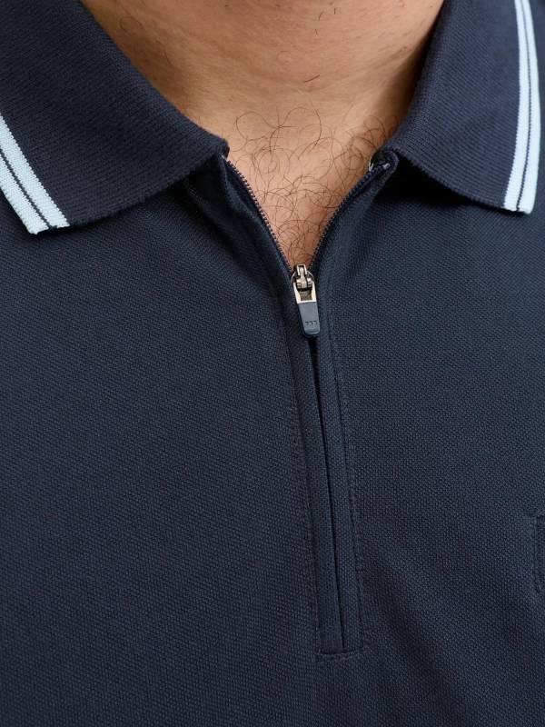 Polo manica corta da uomo in taglie grandi della linea JACK&JONES, modello con colletto e zip.