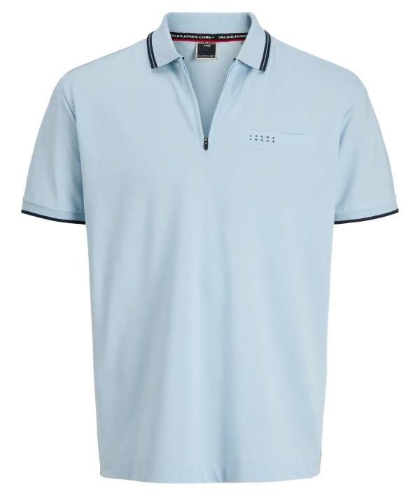 Polo manica corta da uomo in taglie grandi della linea JACK&JONES, modello con colletto e zip.