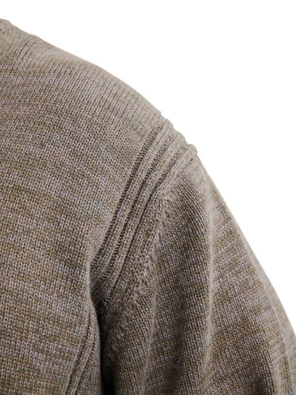 Collo alto, chiusura con bottoni e mezza zip.