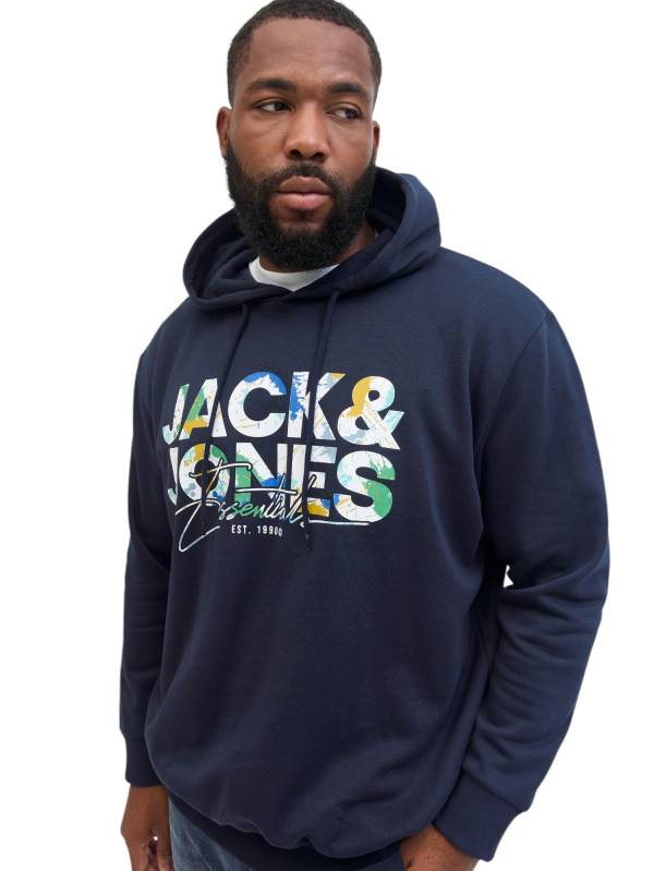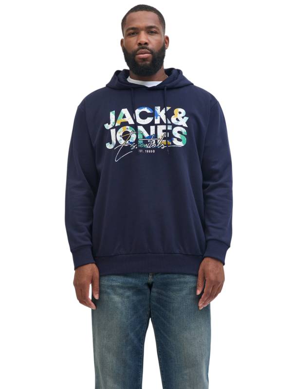 Felpa da uomo in taglie grandi della linea JACK&JONES, modello con cappuccio.