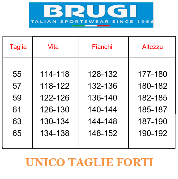Pantalone uomo in tagle grandi della linea BRUGI, modello imbottito.