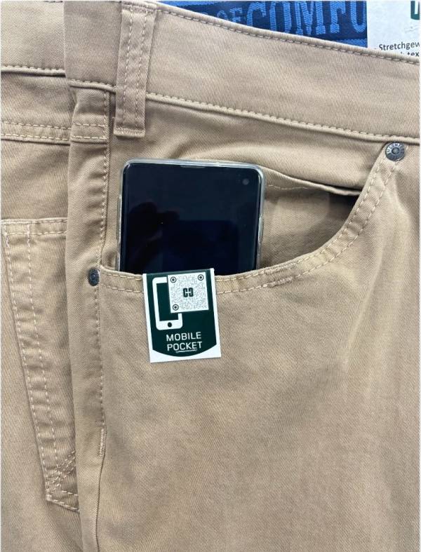 Il taschino brevettato per cellulare fa in modo che non dia fastidio sedendosi.