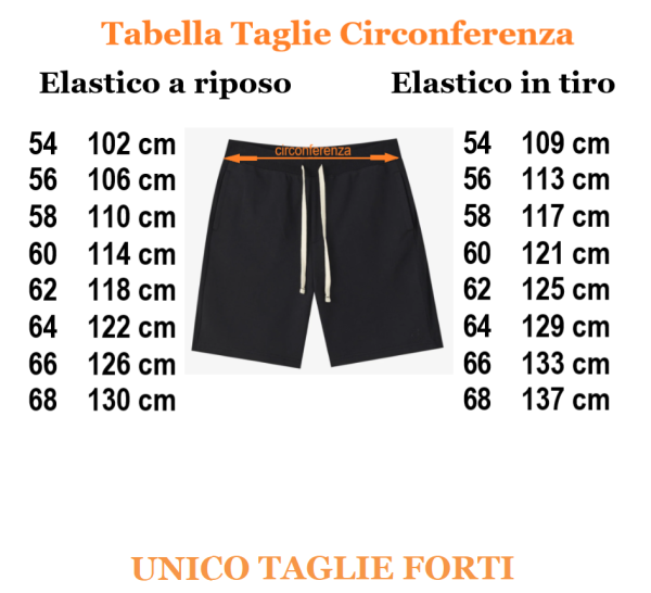 Le misure del bermuda sono ad elastico a riposo ed in tiro.